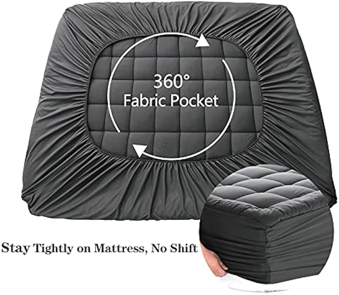 EASELAND 加州大号双人床床垫床垫枕头顶床垫套绗缝床垫保护长棉上衣 20.32-53.32 厘米深口袋冷却床垫床垫罩(172x213.26 厘米,深灰色)