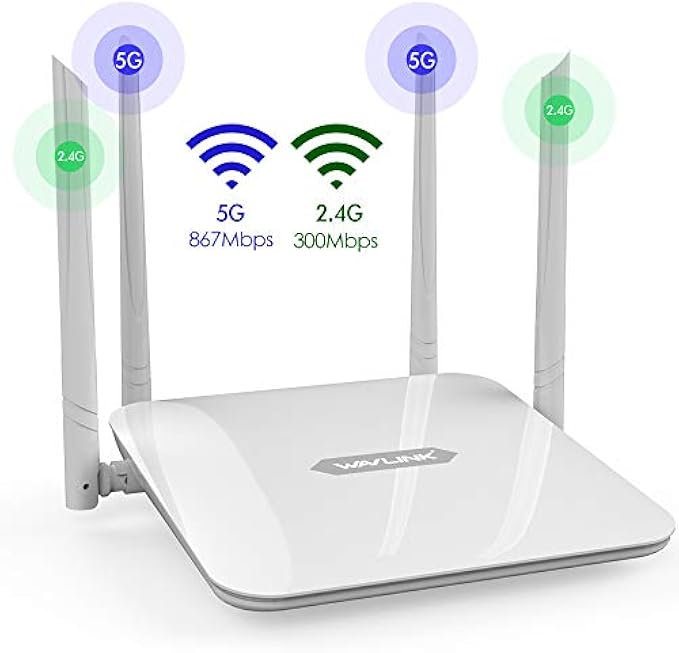 WiFi 路由器 1200Mbps,WAVLINK 智能路由器双频 5Ghz+2.4GHz,家用和游戏无线互联网路由器 PA+LNA | 2x2 MIMO 天线 | 支持路由器/接入点/WISP 模式